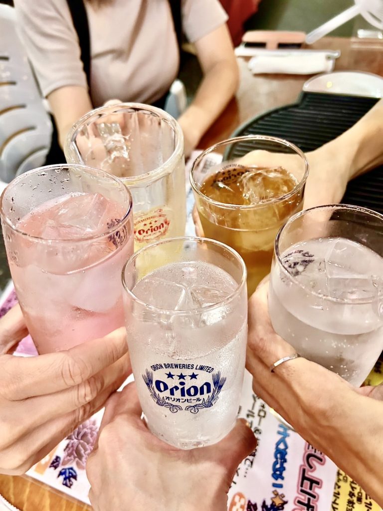 冷えた「オリオン・ザ・ドラフト」で乾杯すれば、