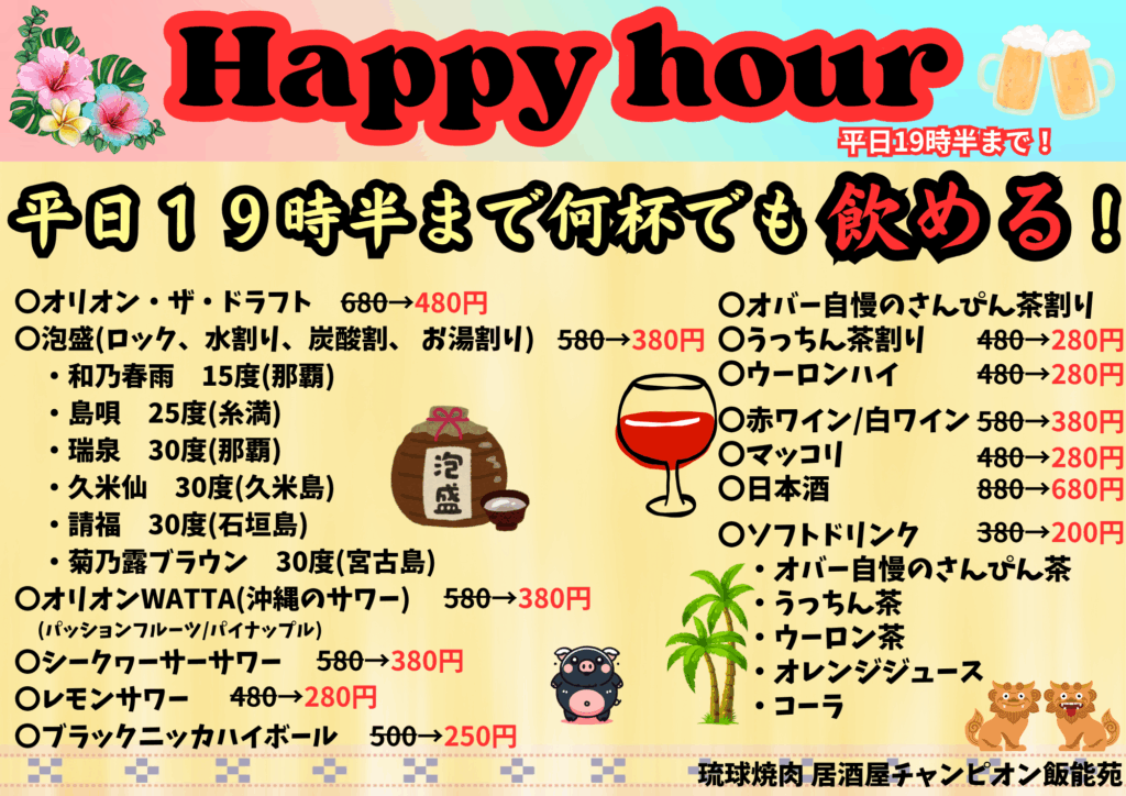 琉球焼肉 居酒屋チャンピオン飯能苑のHappy Hourで