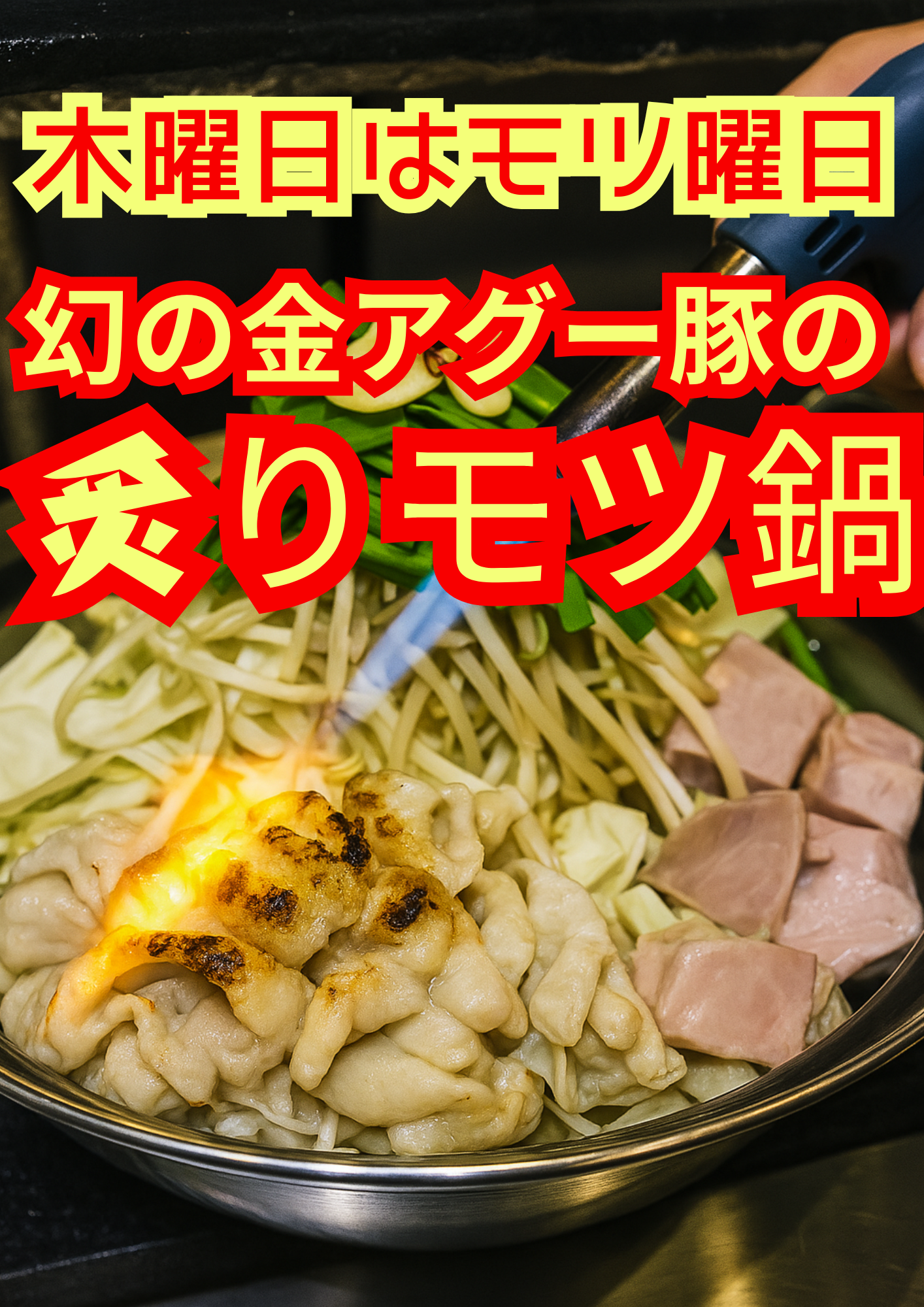 木曜日はモツ曜日!幻の金アグー豚の炙りモツ鍋、世界初登場!